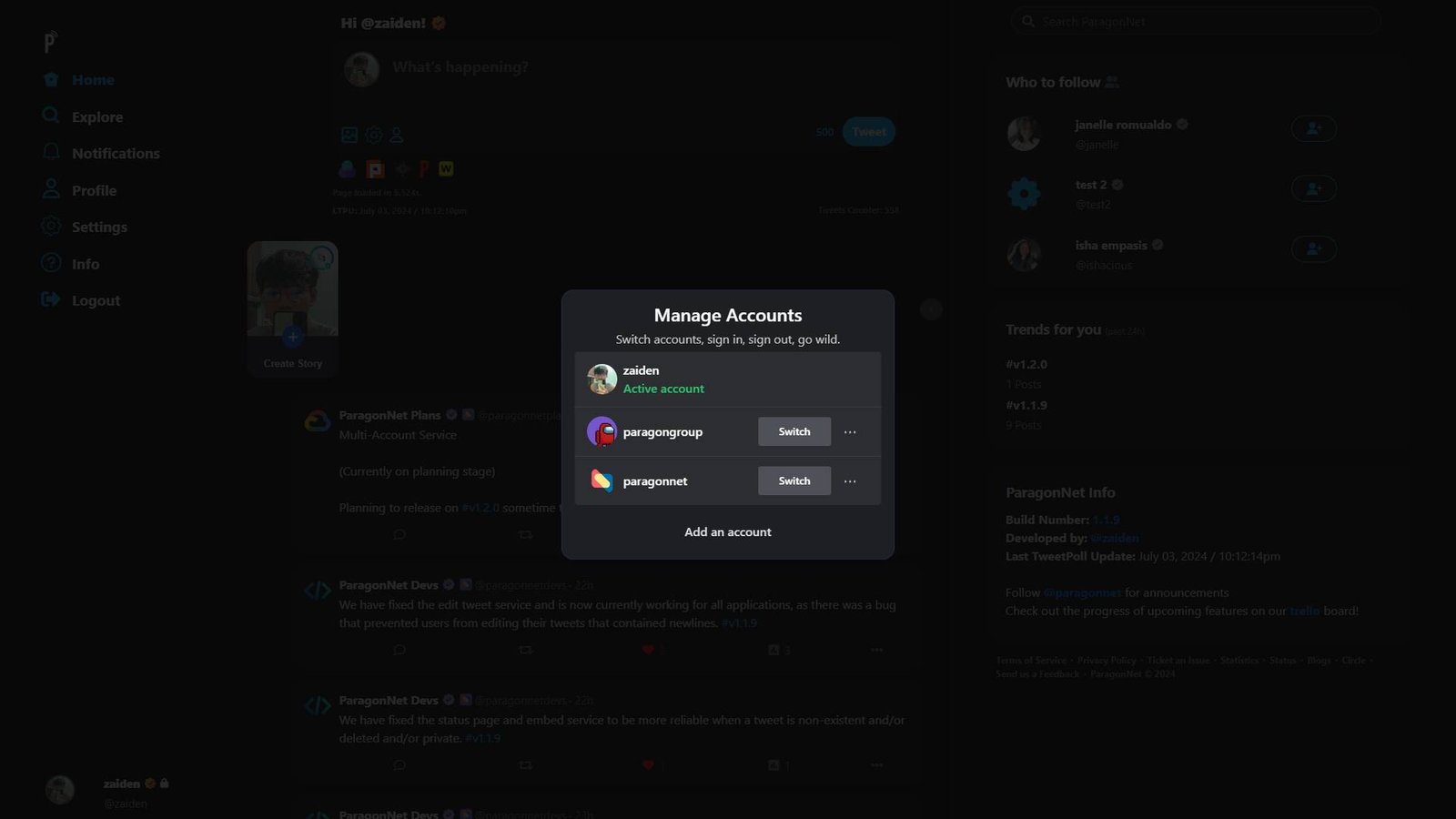 We are happy to announce our newest feature, multi-account switching. This feature allows verified users to switch accounts seamlessly.This feature is still in its beta stages, but we have made it public for users to experience multi-account switching as soon as possible, and also to gather data about the feature. #v1.2.0