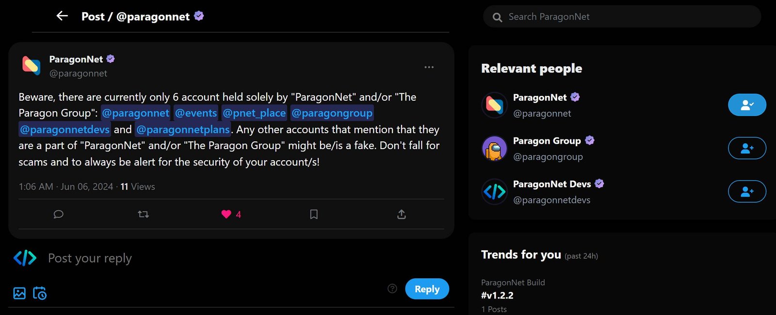They will not be able to follow you or view your posts, and you will not see posts or notifications from @paragonnetdevs.