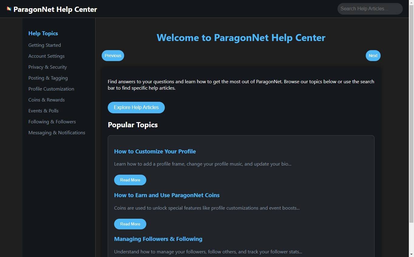 We are starting to work on a dedicated Help Center for using ParagonNet for commonly used services and features around the platform. / help #v1.2.3