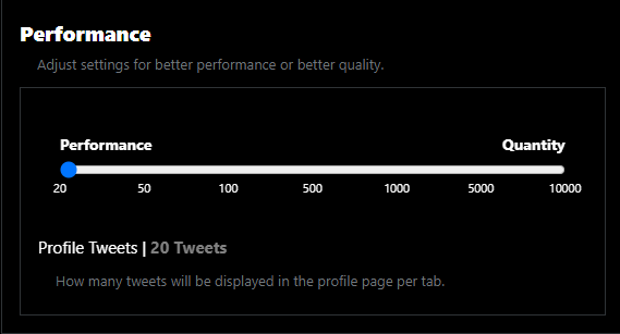 / account ; however, expect slowdowns in profile pages that has a lot of tweets if you increase the quantity of tweets that get displayed. #v1.1.6